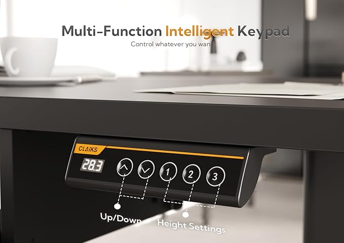 - Ultra-Quiet and Powerful Motor: Claiks custom-designed motors provide robust power for the height-adjustable standing desks. With noise levels as low as 45 decibels, you can enjoy smooth and quiet adjustments, enhancing your workspace without any disruptions.