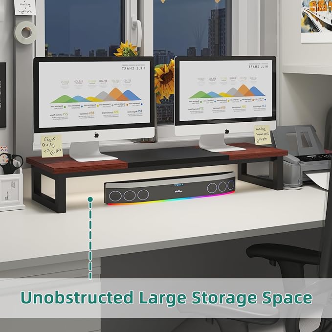 - 【Large Monitor Stand】The dimensions of the desktop riser is 38.6"L X10.2 "W X 5"H. Computer monitor stands for 2 monitors/laptop/TV. This is an ideal choice when you need multiple computers to work together