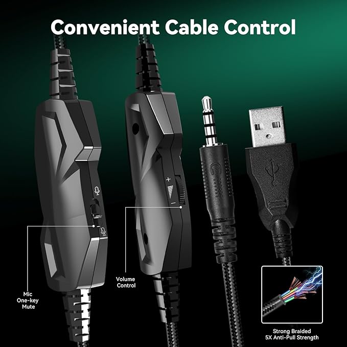 - 【Professional Gaming Headset】Gaming headphones with 6.5ft high tensile strength, anti-tangle braided cable, rotary volume control and button microphone mute.
