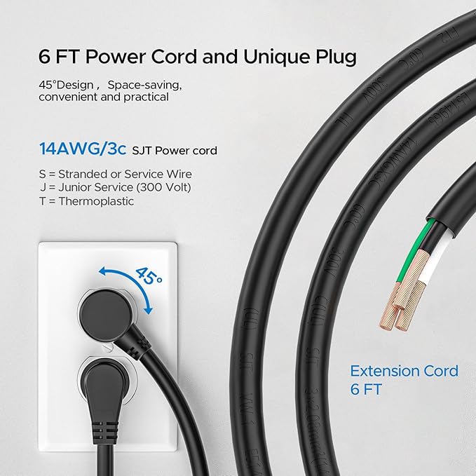 - [Humanized Design] This long power strip is designed to fit the standard 16-inch stud spacing, allowing you to easily attach it to your wall studs for a secure and organized setup. Wide-spaced 1.7-inch center-to-center outlet, perfect for bulky plugs and power supplies. 45° angled flat plug, and mounting supported hanging slots, all these features bring you more convenience.