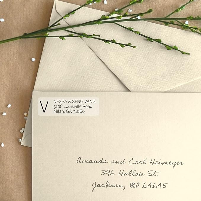 - Perfect Size: These classic address label designs measure approximately 2½" x ¾". Simple design for any wedding theme, trendy font choices brings charm to this timeless address label. Clean, legible address font with a large monogram letter.