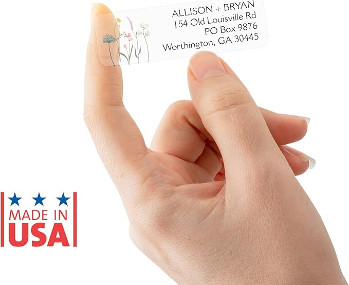 - Perfect Size: These artsy address label designs measure approximately 2½" x ¾". Simple design for any wedding theme, trendy font choices brings charm to this timeless address label. Multicolor wildflower design complemented by clean, legible address font.