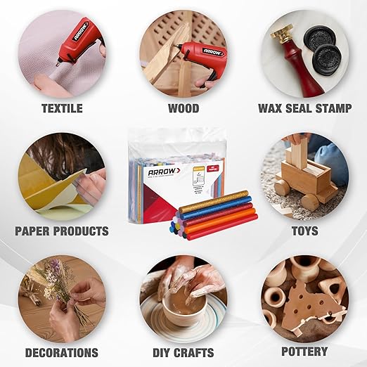 - Extra-strong Bond: With a higher EVA content compared to traditional glue sticks, our product delivers an extra-strong bond. It ensures that your projects stay securely in place, whether you're working with paper, fabric, wood, or other materials.With their superior adhesive properties, these glue sticks create a strong and reliable bond on various surfaces, including paper, fabric, wood, plastic, and more. Your projects will stay intact