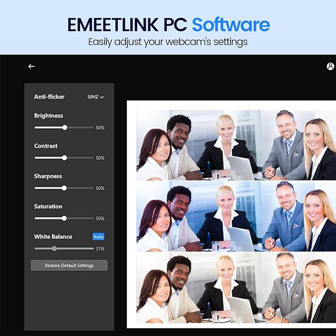 - [High Compatibility] The webcam for laptop is compatible with Windows 7/10/11, MacOS10.14 or later, Linux, Android TV 7.0 or later. The compatibility of the streaming camera is super wide for major software like Zoom, Facetime, Google Meet, Skype, YouTube, and more. Whether it's for online learning, home office, meeting, meeting, or video calling, the webcam is perfect for you. (Tips: When finding that the image turns green or other colors, you can use the eMeetLink software to adjust)).