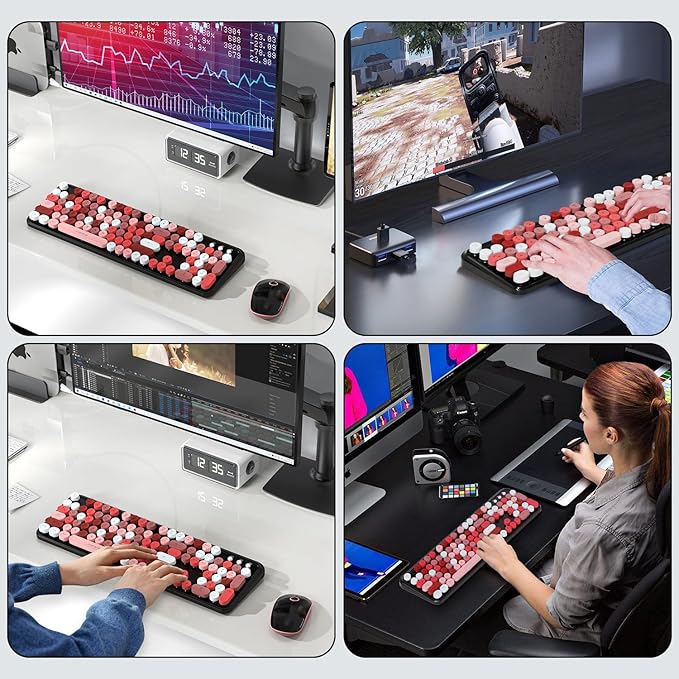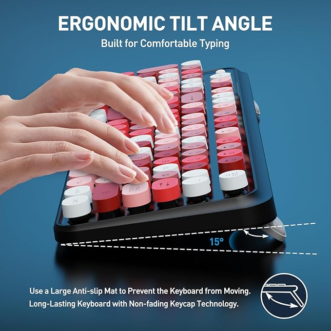 - A fusion of retro style and modern design: The inspiration of these cute rounded keys come from vintage typewriters offering you visual enjoyment and retro feeling to type. The mini Optical mouse is with modern ergonomic design,DPI adjustable(800-1200-1600).The combo will bring you a nostalgic feeling with the eye-catching retro aesthetic.