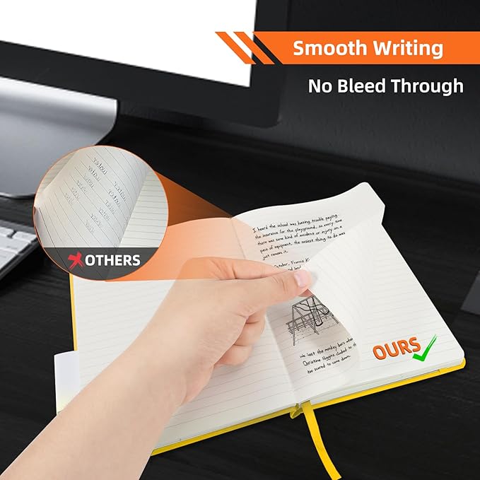 - NO BLEED THROUGH & GHOSTING - Bossand notebook is made with 200 pages high-quality, 100 gsm acid-free paper, the premium thick paper ensures a smooth touch and prevents ink from bleeding through the pages, ghosting, or discoloration. Whether you prefer fountain pens, gel pens, or ballpoint pens, this journal is suitable for most writing instruments.