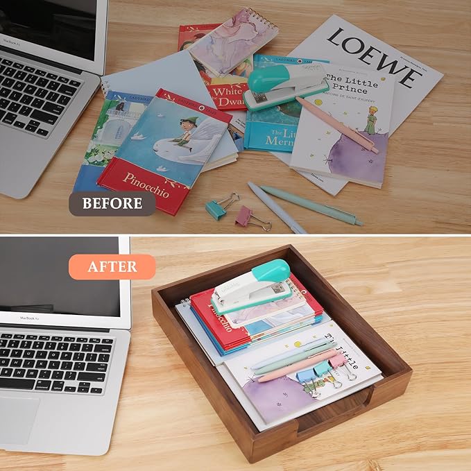 - Low-key Luxury: As a letter tray, premium black walnut manifests delicate taste and always gives a primitive & classic feeling! It is durable and practical in daily life, while as a handicraft, burnished surface creates comfortable texture, they can serve as a home decor with their elegant and decorative look or even have collection value.