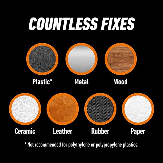 - All purpose glue: Gorilla Super Glue is formulated for virtually all projects and repairs; it bonds glass, plastic*, wood, metal, ceramic, rubber, leather, paper, and more
