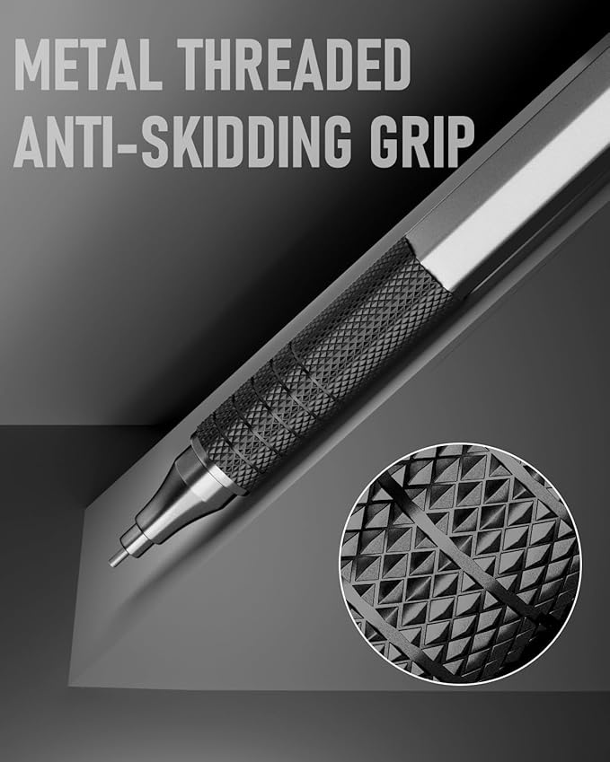 - Metal Threaded Anti-skidding grip: Metal grips with an anti-slip texture to ensure a secure and comfortable grip while writing or drawing, without causing fatigue.