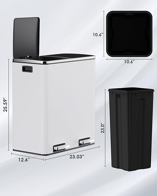 - 2*8 GALLONS COMPARTMENTS: Trash can has two independently compartments for trash and recyclables, making it easy to sort waste.