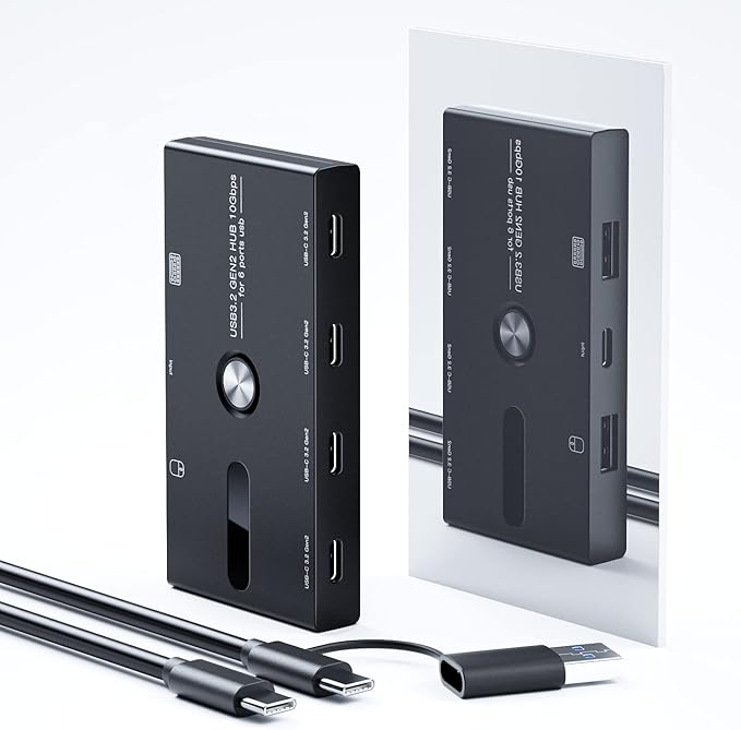 - 【6-Port】 In addition to 4 USB3.2 GEN2 specification Type-C ports, this HUB also has two USB2.0 specification traditional A ports, so you can directly connect A port devices such as keyboard, mouse, printer, camera, etc. on this HUB.