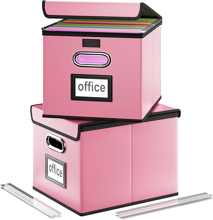 - Unique Functional Design - This file boxes both sides are equipped with practical PVP slide rails, which can not only prevent the two sides of the file storage box from loosening, but also facilitate the sliding of the file folder, which is very suitable for hanging file folders. The metal handles on both sides allow us to easily move the storage box, and the label slot on one side facilitates classification. Functional features and a beautiful design create the best filing box organizer.