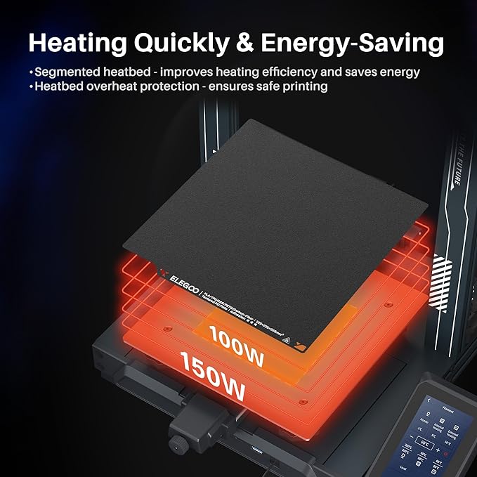 - SEGMENTED HEATED ZONES: The 3d printer has 2 independent heating areas . Slicing software automatically identifies the model size and activates peripheral heating zone if it exceeds the central heating zone. Significantly reduce power consumption and speed up heating