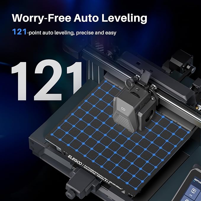 - AUTO LEVELING & EFFICIENT COOLING: Newly design 121 (11x11) points auto bed leveling ensures quick and accurate leveling. Powerful double-sided cooling fans and model cooling blower fans prevent warping and enhance print quality