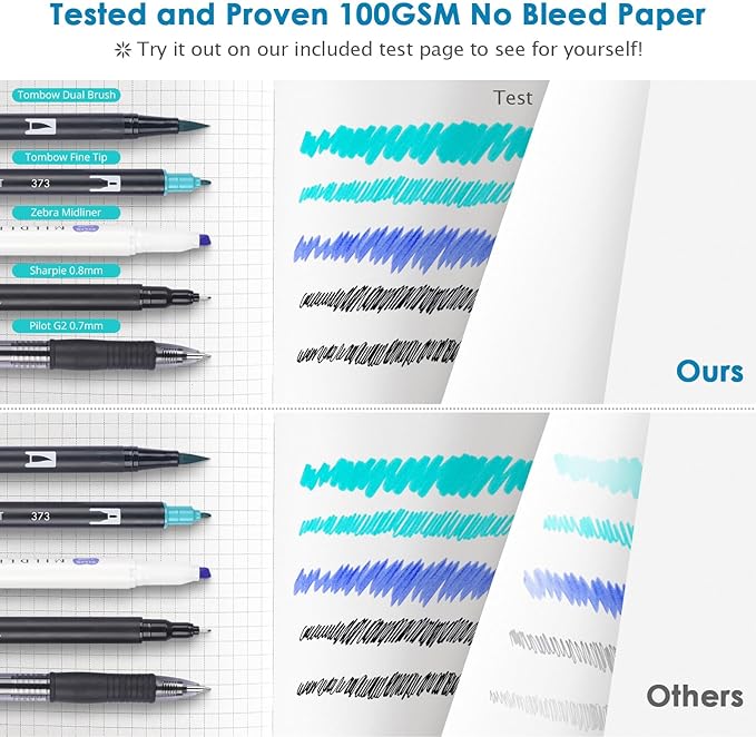 - 【Thick Paper for Writing Without Limits】Large B5 hardcover notebook (7.6"x 10"/193mm x 264mm), total 320 pages, includes 312 numbered pages(equal to 156 sheets). 5 x 5mm graph grid paper(5 squares per inch). Our INNOVATIVE PAPER TECHNOLOGY on 100GSM thick paper ensures a perfect canvas for your ideas - no bleed, no ghosting, as confirmed by tests with various pens.