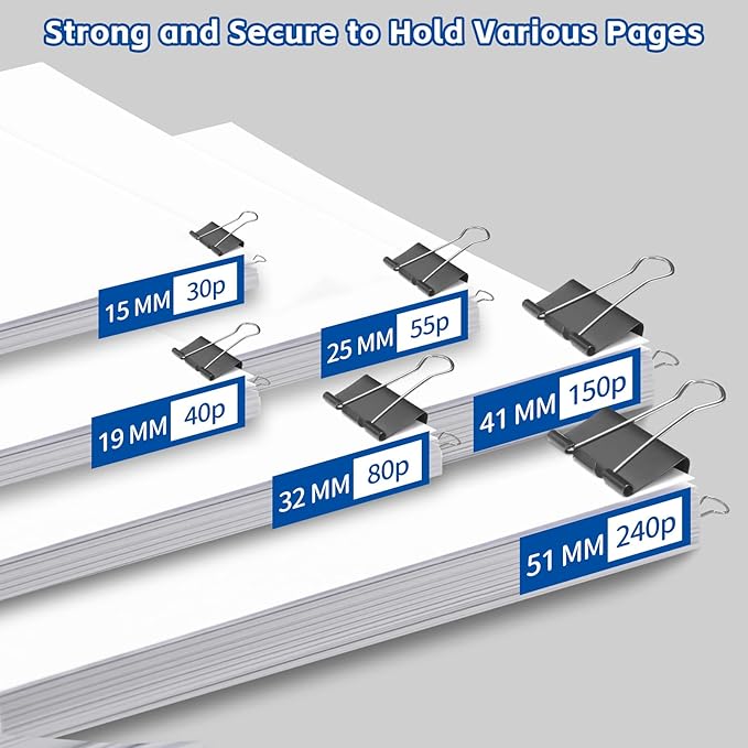 - Premium Materials - Binder Clips are made of sturdy tempered steel, durable, premium black coating finish allows paper clamps to achieve both beauty and rust resistance. Binder Clips are reusable and provide superior fixing power.