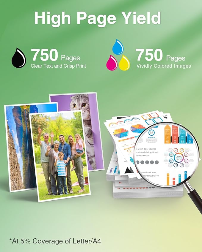 - 【High Page Yield】LC404 High Yield Ink Cartridge. Up to 750 pages per LC404 black ink cartridge, up to 750 pages per LC404 color ink cartridge. (A4 Paper, at 5% coverage)