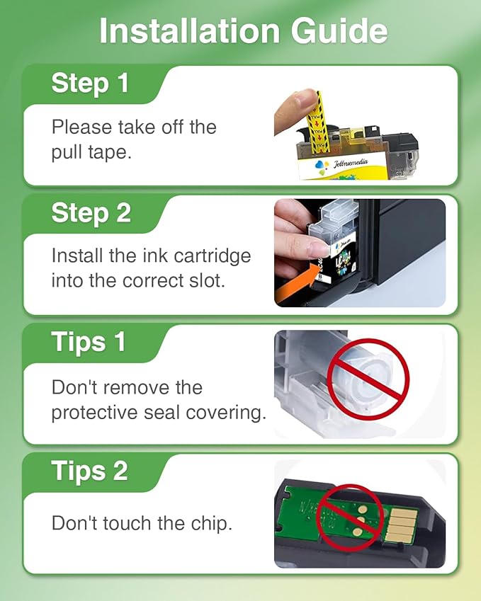 - 【Warm Tips】1. Ignore the printer ink level "?" reminder, it will not affect the use of the cartridge. 2. If your printer shows a message as "Non-Brother Ink", please click "OK", "Yes", "Continue", or just ignore it. This will not affect the cartridge's functionality.