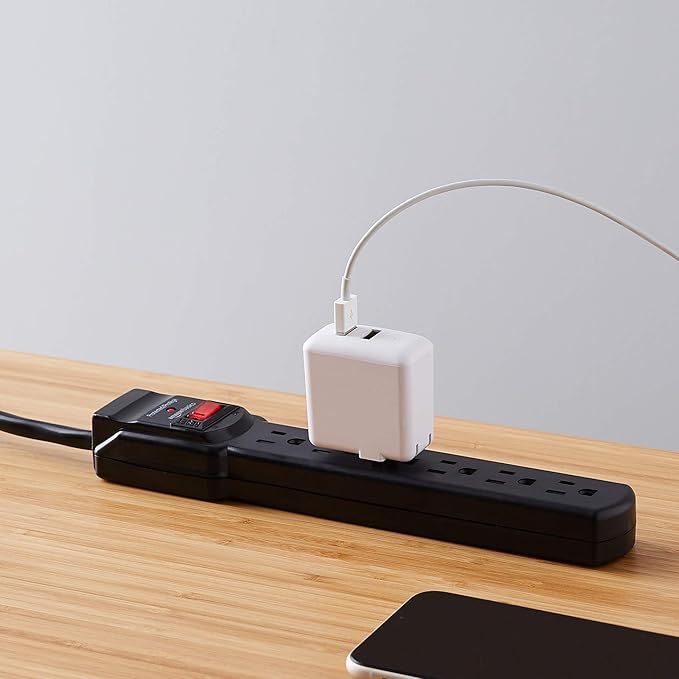 Amazon Basics Surge Protector Power Strip, 6-Outlet with 200J Protection, 2ft Extension Cord, Rectangle, Black (20 Pack)