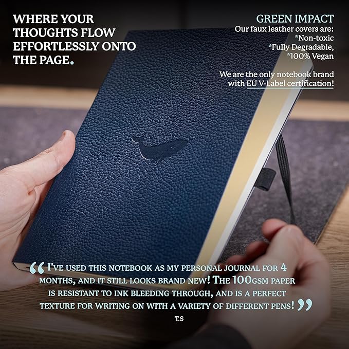 - CRAFTED FOR QUALITY: A softcover bound in PU vegan leather notebook, with smooth micro-perforated cream 100gsm pages. Includes an elastic closure for secure storage, an inner pocket for added organization, a built-in bookmark for easy page finding, and a convenient pen holder—all designed for a seamless note-taking experience, ideal for all your creative ideas and daily tasks.