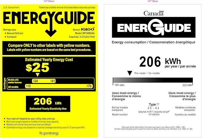 - Refrigerator Cooling Range: 32 β 50 degrees F