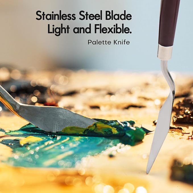 - Variety of Shapes & Sizes: Paint brushes for acrylic painting set includes 24 brushes in 9 series (Large Wide Flat, Flat, Filbert, Fan, Dagger, Cat Tongue, Round, Angle, Rigger), 1pc palette knife, 1pc portable canvas roll. A selection of sizes allows you to bring your vision to life on a large scale, in tiny detail, or anything in between!