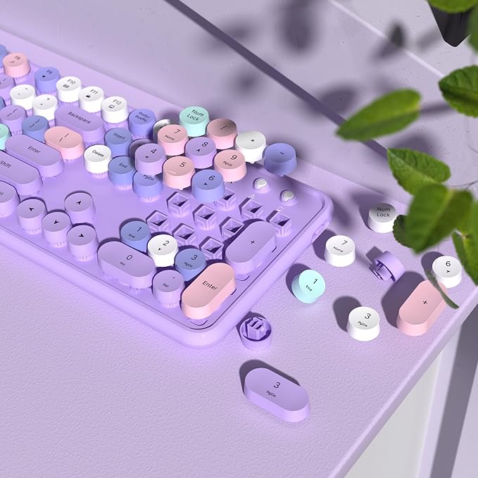 - Retro Round Keyboard:The wireless keyboard features retro typewriter-style round key-caps, 104 keys full-size with numpad, and 12 multimedia hotkeys combined with the FN key to optimize your work and study efficiency