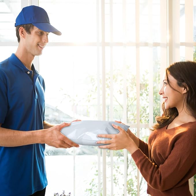 - Eye-Catch Poly Mailers Bags--- Usable size: 6 x 9 Inch, 120Pack. These shipping bags have a white outer surface, and gray inner lining, a highly attractive color that makes your products look better. Their smooth texture makes it easy to affix self-adhesive stamps and address labels, helping you customize your brand.