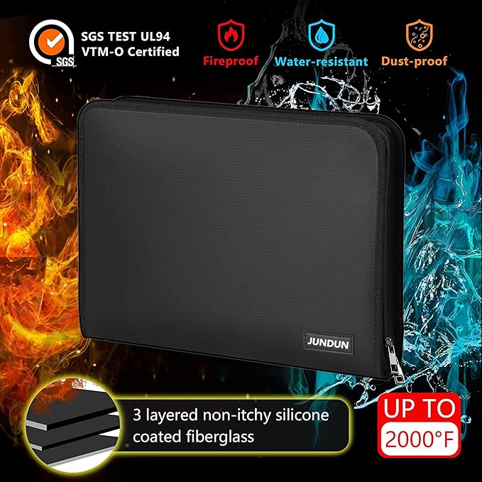 - PREMIUM MATERIALS: Secure your documents with our fireproof file organizer. Crafted from three-layered, non-scratchy fiberglass coated with silicone, it can withstand temperatures up to 2000β. It's also passed rigorous testing (SGS Test: UL94 VTM-0 Certified) and offers high water-resistance for unexpected spills. Keep files neat and accessible with ease using our accordion file organizer. Elevate your protection today!
