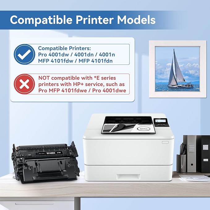 - Compatible with HP Printers: Pro 4001dw 4001dn 4001n, Pro MFP 4101fdw 4101fdn Printer compatible with HP 148X 148A Black High Yield Toner Cartridge
