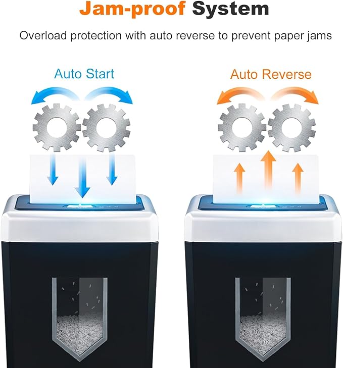 - 【Shredder for Home Office Heavy Duty】Based on the patented cooling system, the paper shredder for office heavy duty runs continuously for 40 mins without stopping and destroys about 2900 sheets of paper, efficiently completing shredding tasks without worrying about overheating or slowing down.