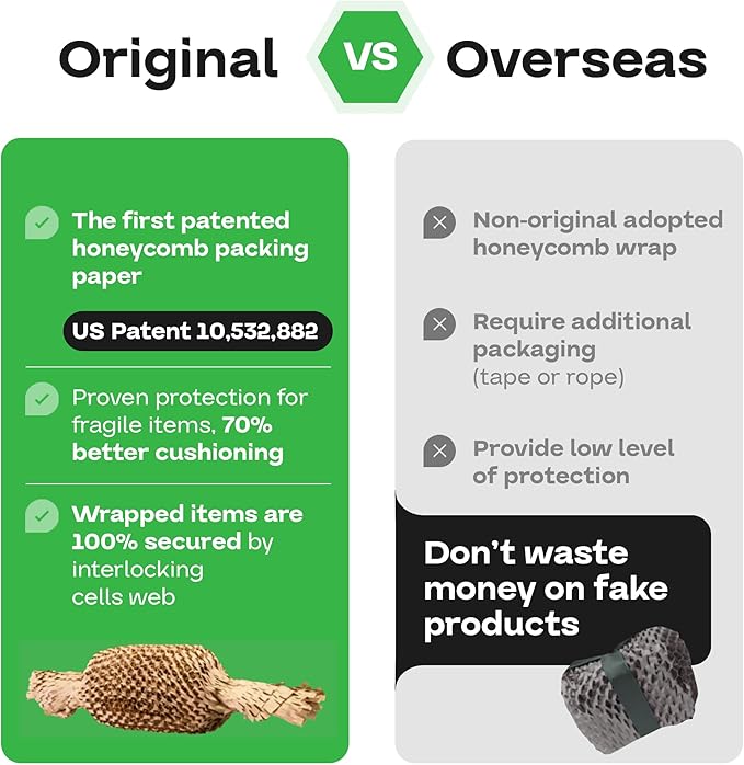 - THE ONLY PROVEN SLIT PAPER TECHNOLOGY: The HexaFil is produced using improved slit paper technology with an interlocking design system for extra cushioning. The hexagonal cells allow the honeycomb wrapping to expand as you pull, creating a three-dimensional cushioning material that surpasses traditional plastic and bubble wrapping