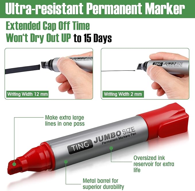 - Practical Chisel Tip Design: each jumbo marker comes with a chisel tip design, offering the versatility of both broad and fine widths; This design makes these markers suitable for a wide range of applications from filling in large areas to precise detailing