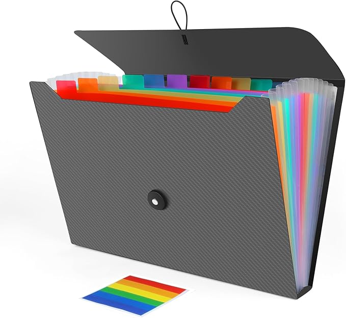 - 【COLORFUL DESIGN】Our expandable file folder features rainbow-colored inner pages and small colored labels for easy classification, making it both functional and visually appealing
