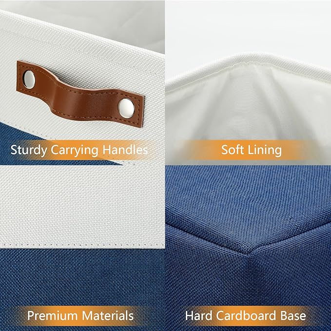 DULLEMELO 51L Large Baskets for Storage, Large Rectangular Baskets for Shelves [3 Pack], Blanket Basket Dog Toy Basket for Organizing Closet, Nursery, Clothes,Toys (White&Blue)