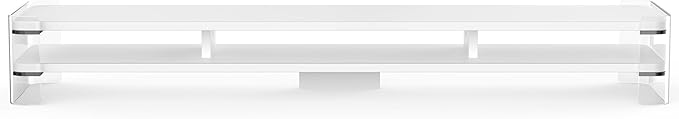 - 【Double Storage】: Acrylic monitor stand is 2 tier storage organizer for laptop, computer or tv stand. The first level with three compartments; The bottom layer is a super large space of 38.7 inches, can be used to store keyboards, mice or other office supplies, adding more storage space and making your desktop tidier.