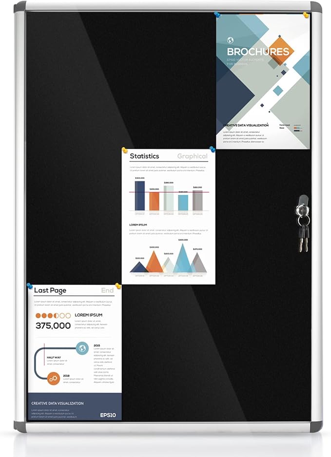 - HIGH-QUALITY MATERIAL: It is made of black felt pin board, durable aluminum construction, shatter-resistant acrylic door and ABS rounded corners