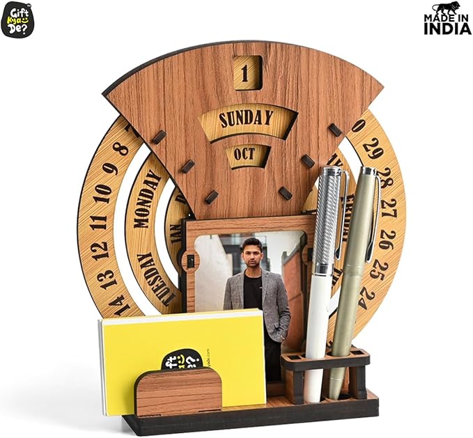 - Designer Home Decor: The beautiful designer calendar 2025 , where you can keep your photo, pen, and cardholder that serve as the perfect piece of home and office decor. Three individual circular rings dedicated to dates, days, and months are placed in an indigenous manner, which may be rotated very easily and precisely to change days, dates, and months to give you a new day every day. This calendar for desks is not limited to any particular year.