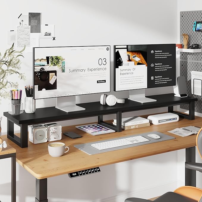 - 【Large TV Riser Stand】Dimensions:59"L×15"W×6.5"H. Large TV riser stand can allow your flat or curved TV/Monitor (up to 75"), monitor stands for 2 monitors(up to 37"). Ideal for your living room,bedroom,office.