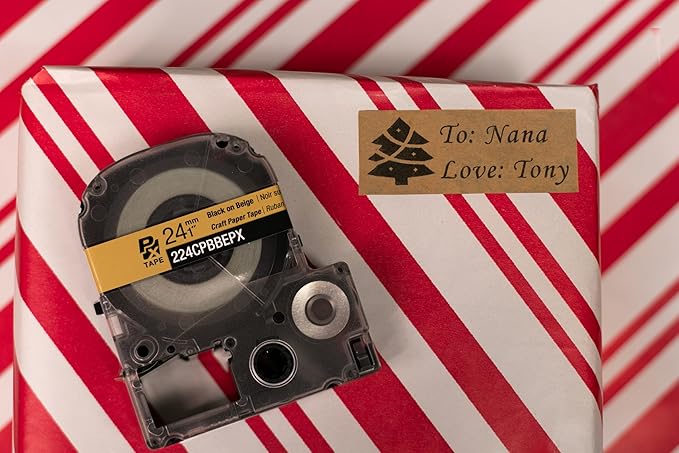 Epson LABELWORKS 224CPBBEPX Genuine Craft Paper Tape Cartridge - Black on Beige Craft Paper Label Maker Tape - 1" (24MM) Wide, 16.5'