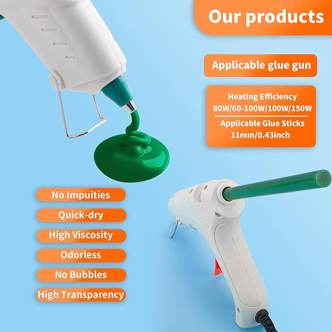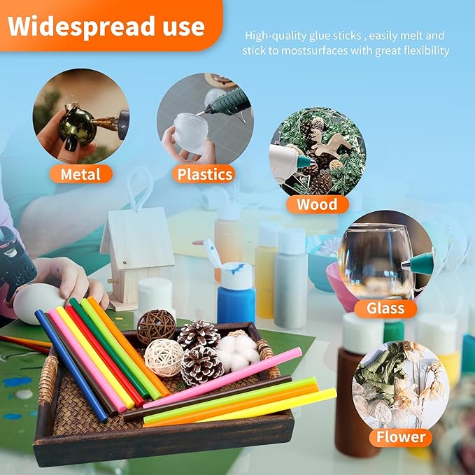 - 【Wide Application】hot glue gun sticks are perfect for crafting, card making, scrapbooking, carton sealing, phone case beauty, electronic appliances, gluing projects, waxing seal stamp, general repairs,creating arts, holiday crafts, decorations, home, office, school DIY and toys.