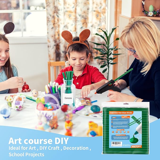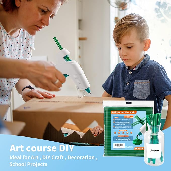 - 【Value Pack】52 pcs green hot glue Sticks Full Size, 11mm/0.43 inch diameter and 200mm/8 inch Length, Long hot glue sticks smooth operation, No need to change glue sticks Frequently, for variety holiday decorations, crafts, arts creation gluing projects and most repair use