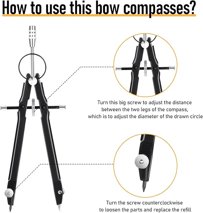 - Warm notice: if you receive the product and found the screw of compass is loose, do not worry, it is not a quality problem; The loose screw makes it easier for you to turn the pencil down; You can tighten the screw after using pencil replace divider part