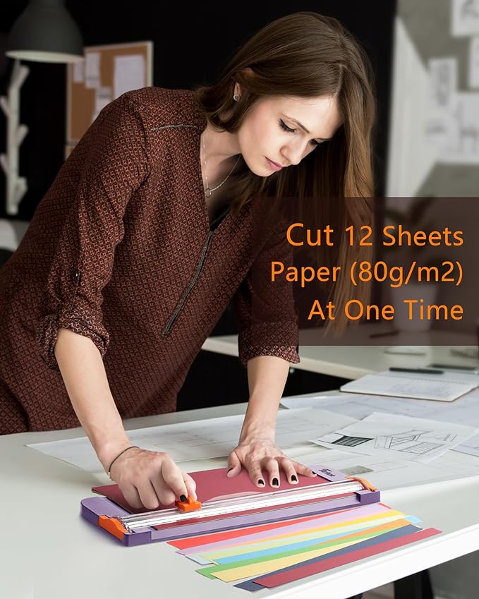 - Efficient Cutting: Cut A3, A4, A5 paper, photos, cards, laminated materials (within 1.5 mm), and more. Cut up to 12 sheets of paper (80 g/m2) at once for maximum efficiency