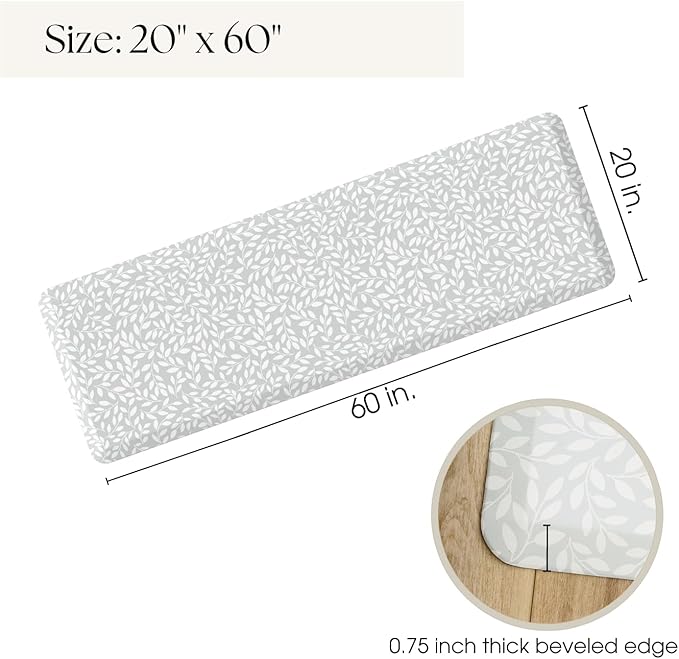 Anti Fatigue Mat by Laurel Lane Co. – Designer Anti Fatigue Mats for Kitchen Floor, Kitchen Mats for Floor, Desk Mat – Cushioned 0.75" Thick – Stain Resistant – Non-Skid Bottom – 20" x 60"