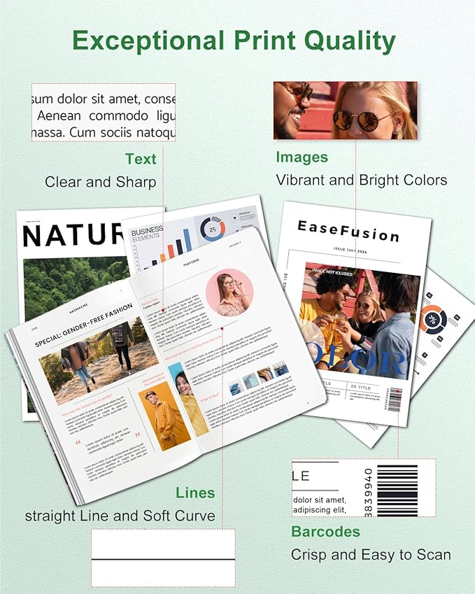 - Superior Printing Quality: All EaseFusion for printer ink hp 67 are rigorously tested to ensure consistently outstanding performance. You can enjoy sharp, clear text and vibrant, stunning colors without any blocking issues. Our 67xl ink cartridges for hp ink 67xl are compatible with e series printer activated the HP+ service