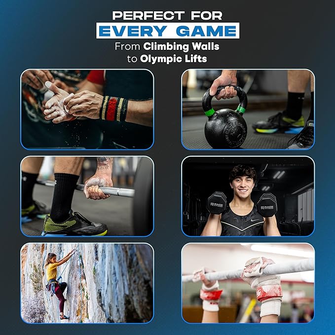 - 【VERSATILE FOR EVERY ATHLETE】: Whether you're a powerlifter, climber, gymnast, or into CrossFit, Rage Fitness chalk enhances grip for all high-intensity training. Great for deadlifts, muscle-ups, rope climbs, kettlebells, and more.