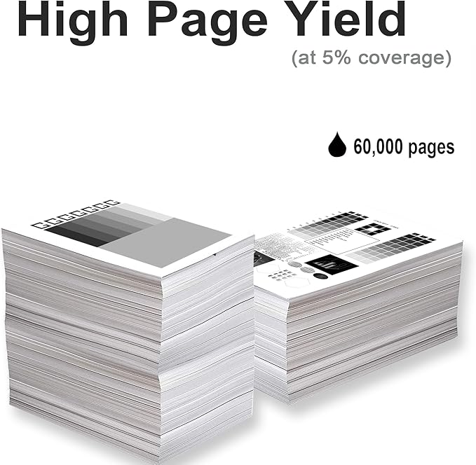 - High Page Yield: Up to 60000 pages per (at 5 percent coverage per A4 letter)