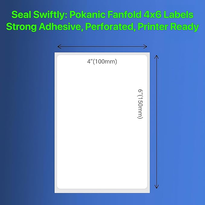 Fanfold 4 x 6 inch Thermal Labels Stack Direct White Strong Adhesive Perforated Postage Shipping Printer Compatible with Zebra SNBC Epson Rollo (6000, Fanfold)