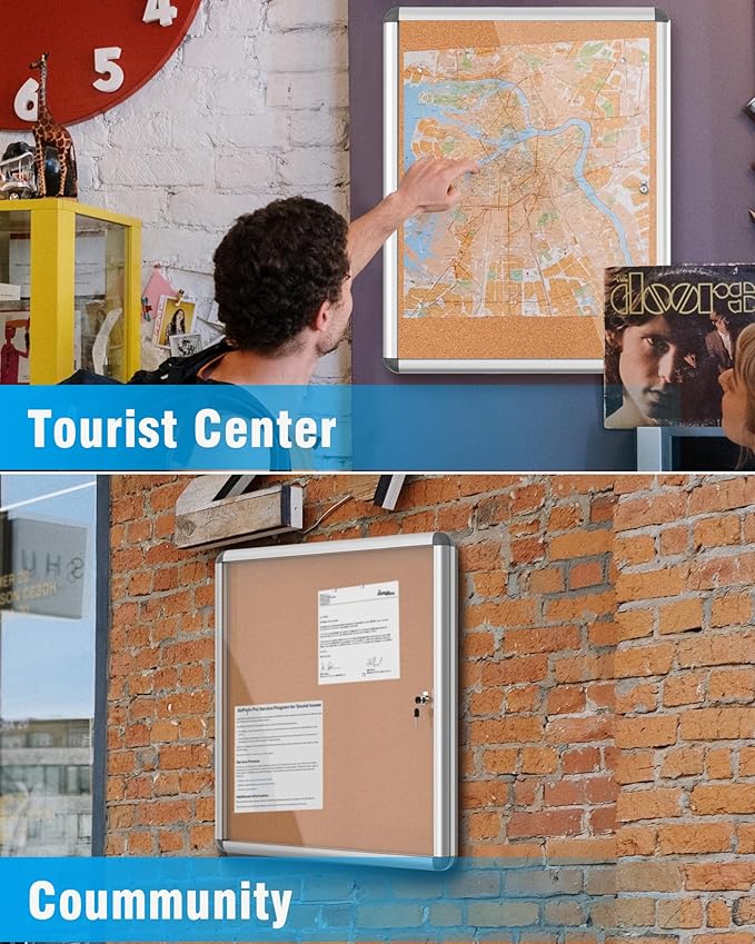 - ✔【Secure Enclosed Bulletin Board】: This lockable bulletin board ensures the safety of your announcements and guarantees that posted items can only be removed by authorized individuals. Suitable for push pins, thumb tacks, or map pins, it's perfect for displaying notes, messages, pictures, memos, calendars, menus, reminders, and more. Ideal for home, office, or business environments.